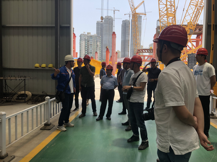 在考察學(xué)習(xí)期間,考察人員首先前往第一站中鐵大橋局七公司楊泗港青菱段斜拉橋工程項目,該項目負責(zé)人李斌帶領(lǐng)我司考察學(xué)習(xí)人員深入楊泗港大橋主塔施工現(xiàn)場,參觀了該項目的主塔工程,項目負責(zé)人向大家詳細介紹了該項目的工程建設(shè)情況,該工程臨近鐵路,工程進度任務(wù)極重,施工組織及施工技術(shù)要求高、施工難度大,并就相關(guān)問題與大家進行了現(xiàn)場交流。