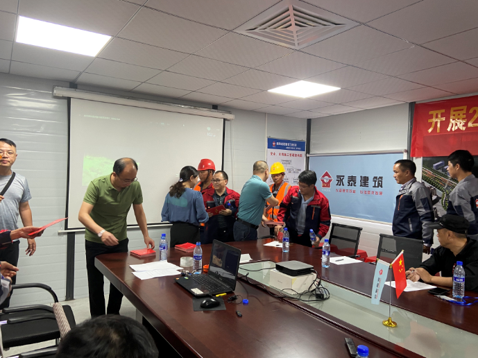 現(xiàn)場(chǎng),副總經(jīng)理俞桃蓮、修海金及總經(jīng)理助理章志強(qiáng)向項(xiàng)目部人員及工人現(xiàn)場(chǎng)分發(fā)安全知識(shí)手冊(cè)、安全知識(shí)圖冊(cè)等宣傳資料。