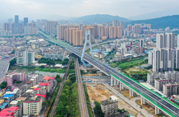 龍巖大道高架橋2013年9月開(kāi)工建設(shè),2020年10月建成通車(chē)。該項(xiàng)目地面道路長(zhǎng)3395米,寬78米;高架橋部分長(zhǎng)2329米,標(biāo)準(zhǔn)段寬26米,含一座(190+150)米的獨(dú)塔雙索面斜拉橋,斜拉橋?qū)?4.2米;葫蘆溪分洪工程長(zhǎng)667米,標(biāo)準(zhǔn)段結(jié)構(gòu)7.5×3.9米,總投資24億元。