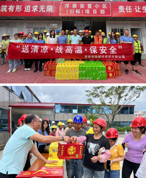 82122,市政集團黨支部書記、董事長、總經(jīng)理孔華同志公司領導班子成員及黨員志愿者小分隊分別前往園田塘蓄洪濕地工程、浮蔡安置小區(qū)和龍欣安置小區(qū)等項目開展送清涼·戰(zhàn)高溫·保安全慰問活動高溫天氣下仍奮戰(zhàn)在一線的勞動者們送去300件的防暑降溫物資。